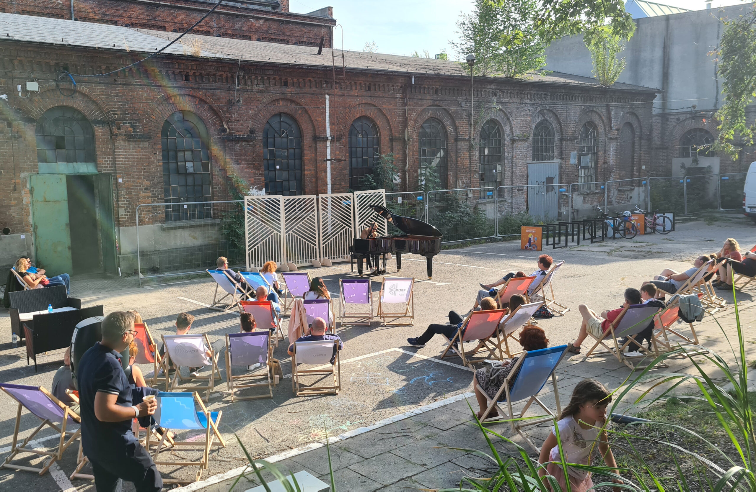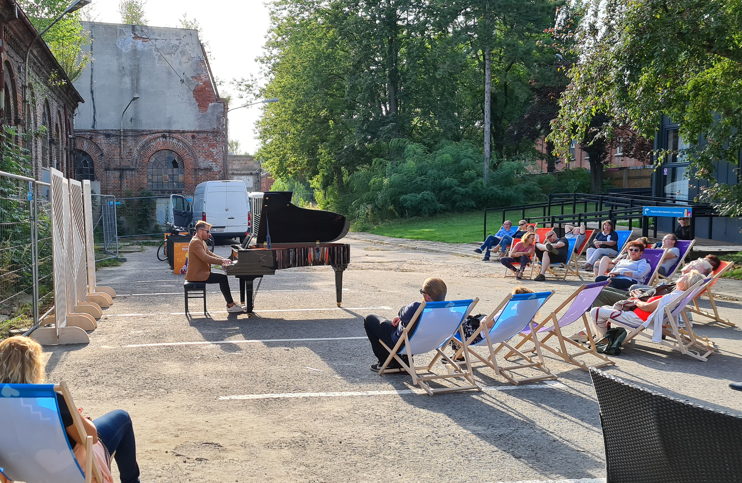 Trzynastego września publiczność zgromadzona na dziedzińcu „Fuzji” była świadkiem wyjątkowego występu Adama Kośmiei. W piękne niedzielne popołudnie przeżyła sentymentalną podróż w czasie w towarzystwie fortepianowych interpretacji najważniejszych polskich utworów filmowych, m.in. niezapomnianej „Kołysanki” Krzysztofa Komedy, motywu z „Polskich Dróg” i klasycznego utworu Fryderyka Chopina z „Pianisty”. Nie zabrakło również kompozycji Wojciecha Kilara, Waldemara Kazaneckiego i Zbigniewa Preisnera. Dobór repertuaru nie był przypadkowy: w tym roku mija 75 lat od utworzenia podwalin powojennego przemysłu i szkolnictwa filmowego w Łodzi.