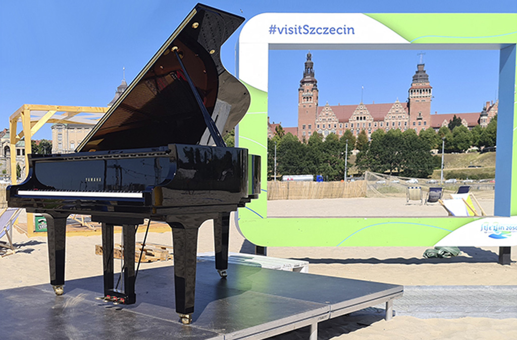 Szczecin, Wyspa Grodzka, nagranie występu Sylwester Ostrowski & Jazz Forum Talents dla portalu onet.pl. Fortepian na zdjęciu: Yamaha C3X.